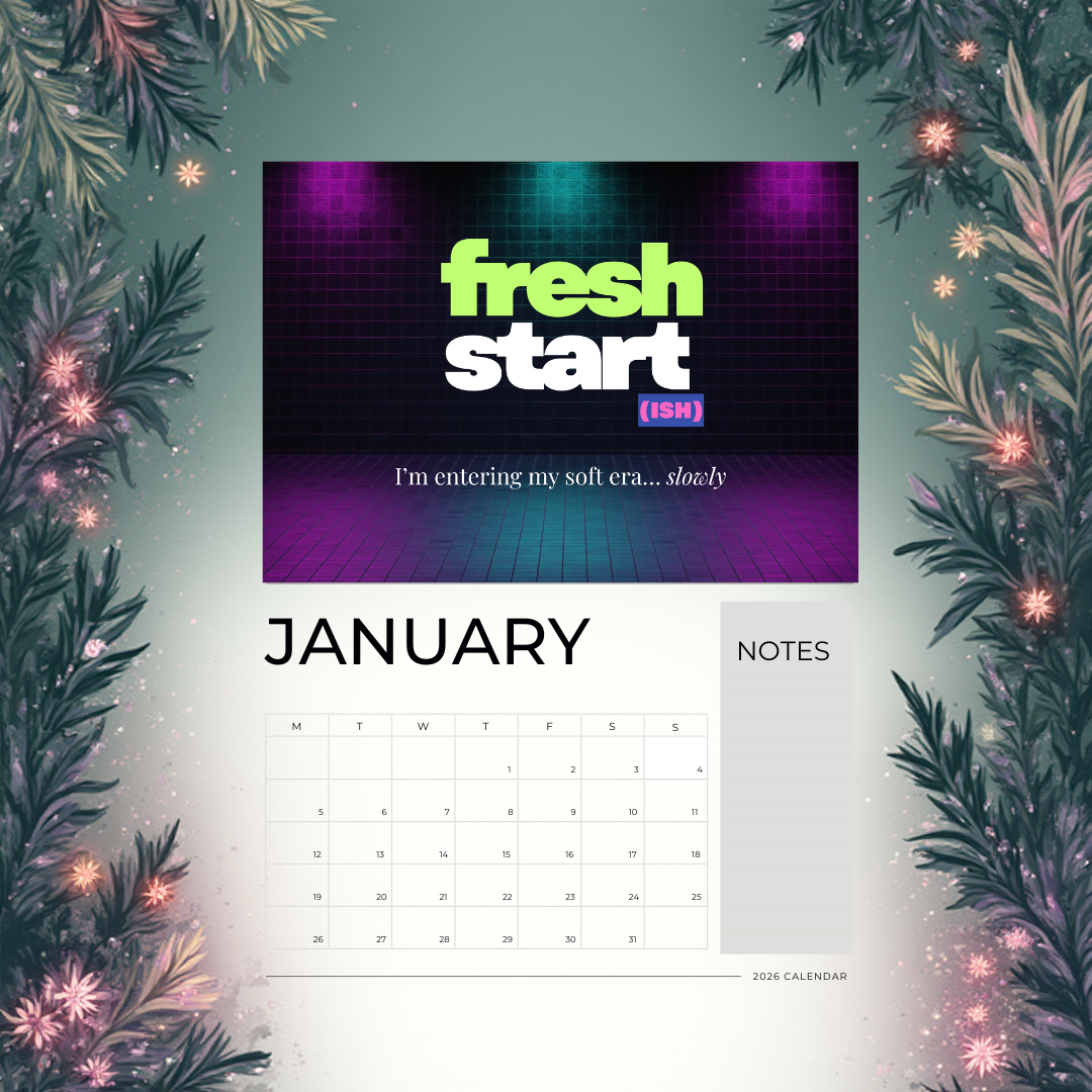 Ease into the new year with a calendar that celebrates the beautiful chaos of existing. The Mellow But Melting 2026 Calendar is a love letter to slow progress, soft ambition, and emotional hydration. Each month features bold color palettes, cheeky affirmations, and just the right amount of existential humor.